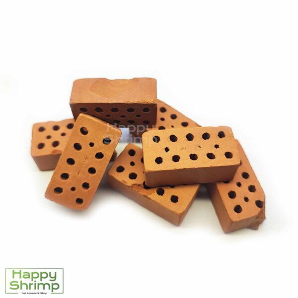 Mini Ziegel bieten durch ihre zusätzliche Oberfläche einen perfekten Ansiedlungsort für wichtige Bakterien. Baby Garnelen können sich in den kleinen Löchern verstecken und gleichzeitig am Biofilm knabbern. Zusätzlich ist dieser Ziegelstein perfekt als Gewicht für Shrimp Lollis geeignet. Sollte jemanden die Optik nicht so zusagen, kann man an diese auch einfach Moos oder Bucephalandra mit Hilfe von speziellen Fäden oder Aquariumkleber befestigt werden. Im Aquarium wirkt es dann so, als ob das Moospolster auf dem Bodengrund wächst.